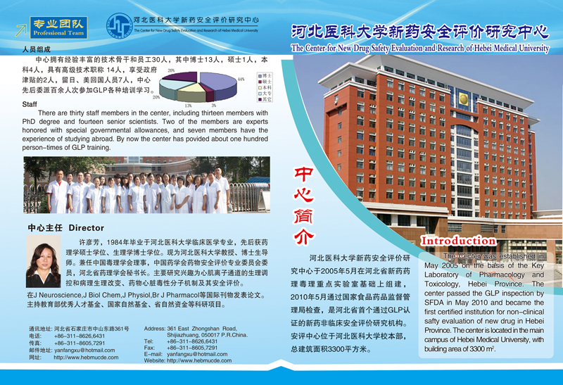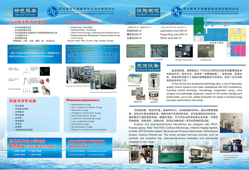 新药安全评价研究中心是在河北省新药药理毒理重点实验室基础上组建,2010年通过国家食品药品监督管理局检查,是河北省首个通过GLP认证的新药非临床安全评价研究机构。该中心位于探花系列