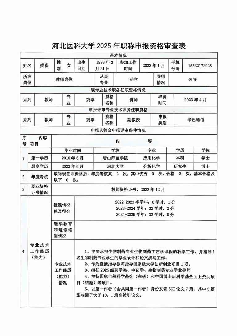 专业技术职务任职资格情况一览表-樊淼