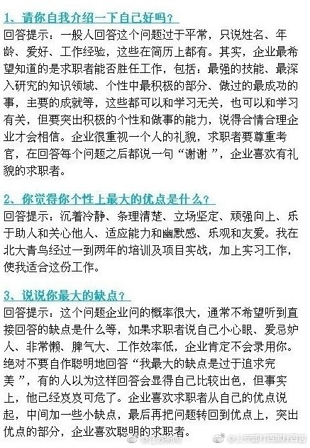 [转]找工作应聘时如何回答面试官提出的问题?
