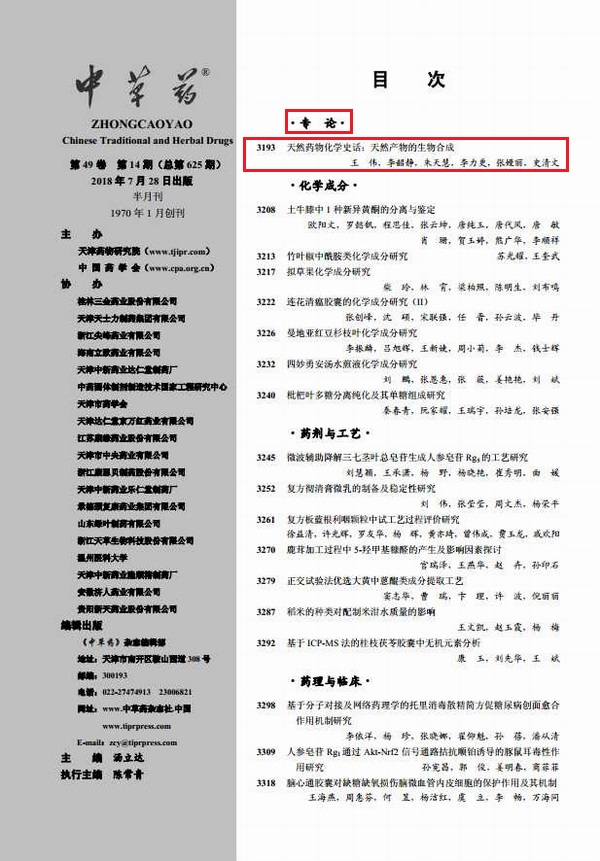 注:本文版权属探花系列 天然药物化学教研室和中草药杂志社